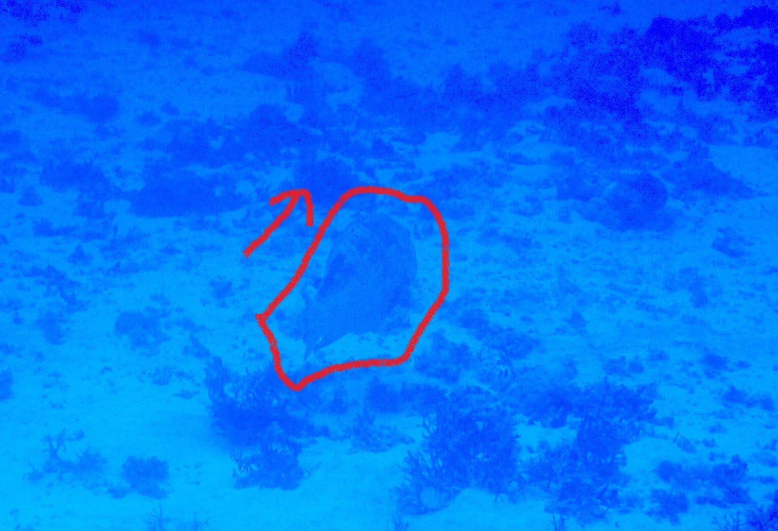 赤線で囲んでいるのが大~~きなハタで、矢印の方向に泳いで行っています。